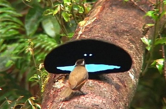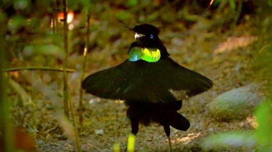 极乐鸟以雄性独特的求偶表演而闻名,在求偶的季节,它们会展开翅膀,挡在雌性的前面,不停展示自己。很多人可能认为,雄性极乐鸟是在用舞姿来迷倒雌性,但有研究发现,它们其实是在调整角度来让自己的羽毛看起来更黑。