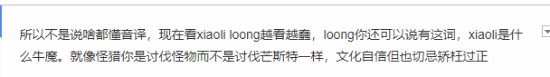 有网友认为游戏中的一些专有名词应使用“音译”更能展示文化自信,例如小骊龙英文目前的译名为“black loong”,有网友认为就应该直接音译为“XiaoLi loong”。但也有网友认为“意译”更能帮助玩家更好的理解内容,不会搞得一头雾水,本地化过程中最重要的还是需做到“信达雅”。