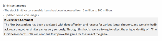 官方在最新的补丁说明中:“《第一后裔》是基于对各种掠夺射击游戏的深刻喜爱和尊重而开发的,我们非常重视关于其他类似游戏的反馈……通过新的补丁,我们试图展现出《第一后裔》个性特征。我们将继续为这类游戏的粉丝改进作品。”