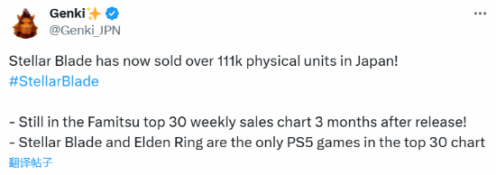 日前,据推主Genki消息,《剑星》现已在日本出售超111000份实体盘。