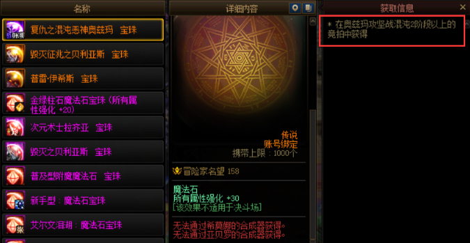 奥兹玛攻坚竞拍当中复仇之混沌恶神奥兹玛宝珠为当前版本魔法石部位的毕业附魔,混沌三阶段当还有一定几率出现阿古朗达、艾肯宝珠,为武器部位的顶级类附魔,出现了也非常值得勇士们竞争一下。