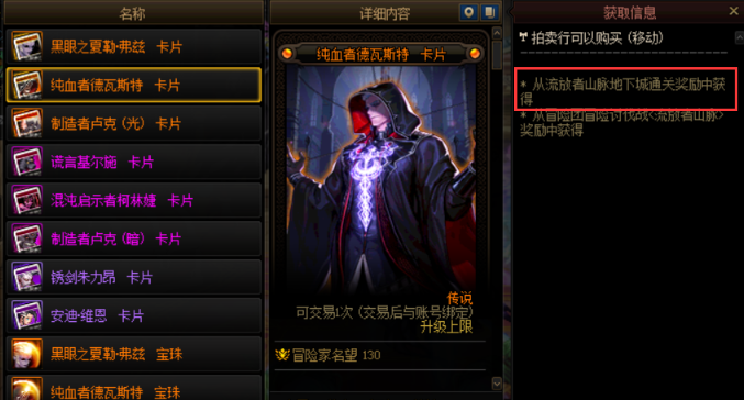 也可以在琳赛·罗森、梅丽处兑换红色黄昏卡片册,在库里欧处兑换暗黑之眼卡片册,有一定几率获取上述卡片。