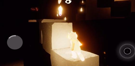 继续点蜡烛前进,然后跳上有火种的台阶。