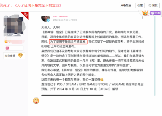 黑神话公告逗乐玩家:发预告为证明"不是完全不搞宣发"