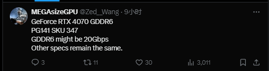 曝英伟达将推新版RTX 4070:GPU不变 显存规格略降