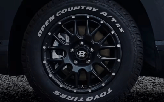 新款黑色合金轮圈搭配 Toyo Open Country A / T 轮胎,增加了越野性能,此外该 SUV 配备泥土挡板、车顶横杆,适合携带露营和徒步旅行装备。