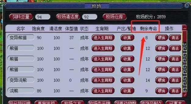 珍稀类-熊猫 从养的时候一直到一直到距老年还有5天这期间喂满,其他天数保持最低80饱食度即可。