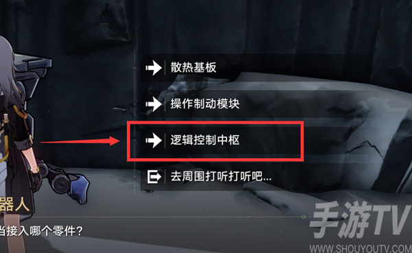 1、微晶单元应当的零件是【逻辑控制中枢】,这个自爆机器人需要我们正确回答问题才可以通过前方。