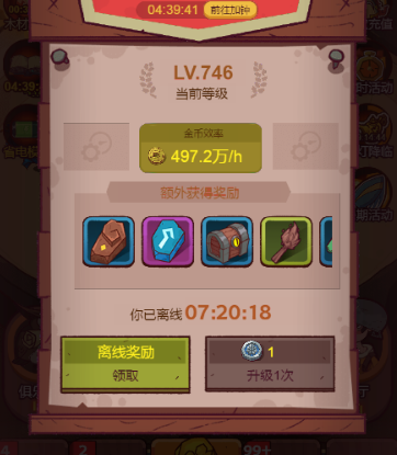一定要挂满超过八小时才会送箱子,箱子留着不要乱用,集中在宝箱周提升一波,木质宝箱是关卡越高,金币越多,所以能留着就留着,后面开金币更多。