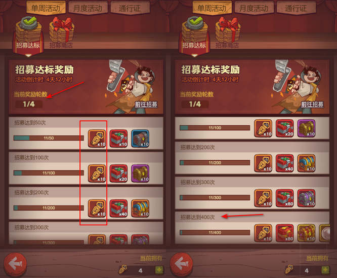 招募一轮需要三百六十个招募令,并且玩家们如果是初始号或者刚刚进入游戏那么碰到招募周活动可以说是非常划算的,同时能够在五十、一百、二百、四百轮当中分别获取相对应招募周一轮的奖励,同时玩家们在游戏当中可以通过以下几种方式获取招募令: