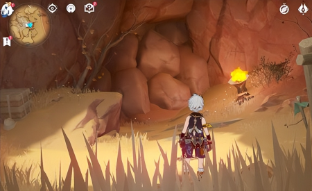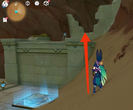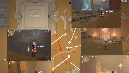 1号标记图处圣金虫在沙堆里,需要用到风元素角色,将沙堆吹走后便会出现圣金虫;