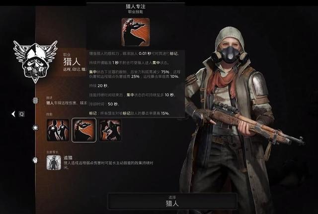 猎人:初始职业之一,可选择解锁;未解锁的可在军火商NPC处购买【锈蚀奖章】制作解锁。