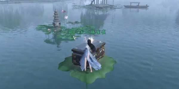 3、之后玩家需要跟随指引来到湖中的一朵黄色的莲花这里来开启挑战,之后即可获得宝箱;