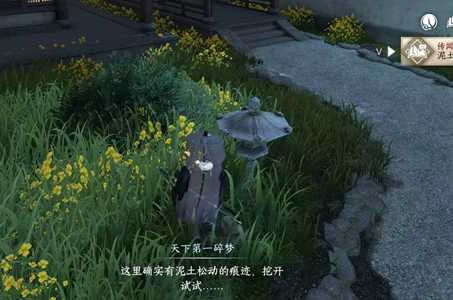2、之后玩家需要来到汴京坐标(965.851)的位置,使用动作【挖掘】,之后会获得任务道具【剑门秘笈】。