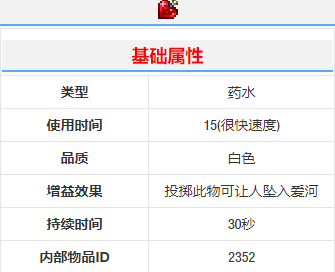 1、爱情药水是一个效果水,也是消耗品,扔在地上爆炸后如果击中到玩家或者NPC,会造成热恋的增益,然后身上会有大量爱心出现,持续 一段时间。