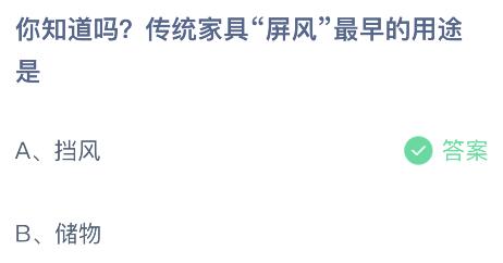 问题一、你知道吗?传统家具“屏风”最早的用途是?