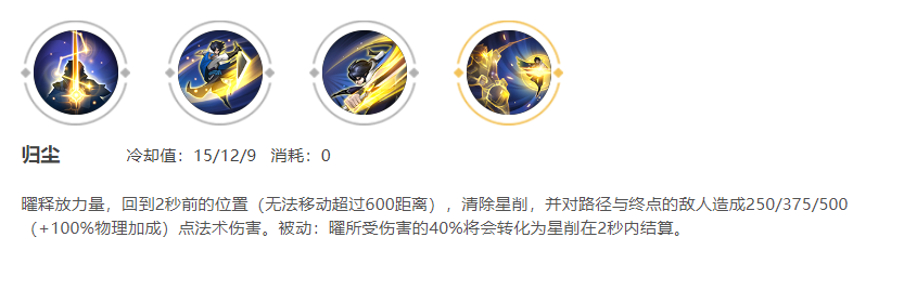 三技能:有一个被动效果:受到伤害会先扣一半的血量,并在两秒内扣除另一半伤害(俗称星削)