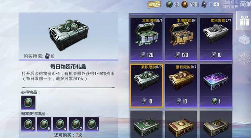 2、可以通过商城,使用点卷购买物资币礼盒。