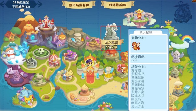 1、玩家进入游戏后,打开地图,找到龙之秘境。