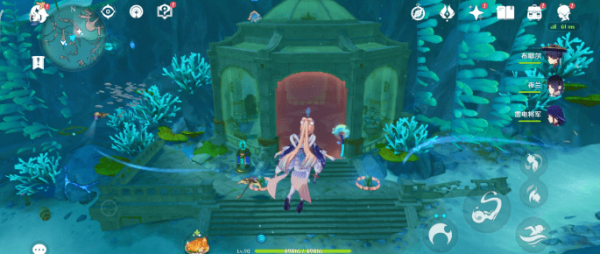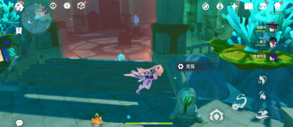 回到宫殿上方普攻对螃蟹拿技能,再然后在原来对着宫殿的右方有一个水流,先点击技能获得护盾,再去那个圈圈上方将水流堵住,最后回宫殿与机关交互即可解锁宫殿。