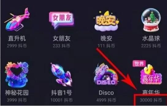1、抖音中拥有非常多不同的礼物,每一个礼物的价格都是不同的,其中嘉年华是比较贵的,需要用户花费3万抖币购买也就是人民币3000元。