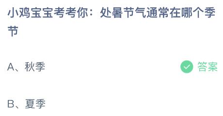问题二、小鸡宝宝考考你:处暑节气通常在哪个季节?
