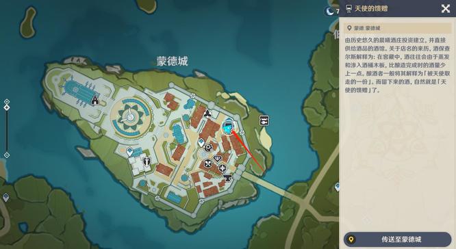 1、来到蒙德城内天使的馈赠处,如下图箭头指示的位置。