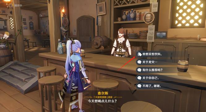 3、与酒馆内的酒保查尔斯对话,选择我想买些饮料选项。