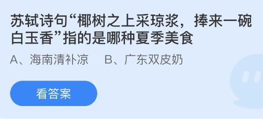 问题二、苏轼诗句“椰树之上采琼浆,捧来一碗白玉香”指的是哪种夏季美食?