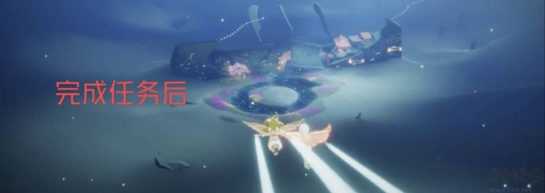 2、风之灵是青色的光芒,就在前面的云里面,靠近即可看清,如果一开始没发现等一会它就会出现了,然后触碰即可成功收集。