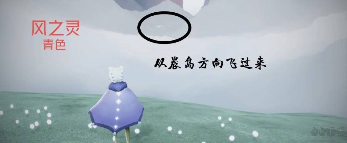 1、光遇手游中,风之灵是青色光芒,位置在云野进图的后面图中。详情如下:
