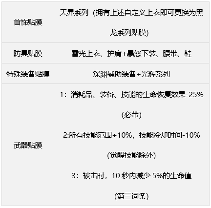 本搭配为同时保证减伤加成,在首饰贴膜更换为黑龙系列时不建议使用蓝灵绿玉石香水带来MP恢复。