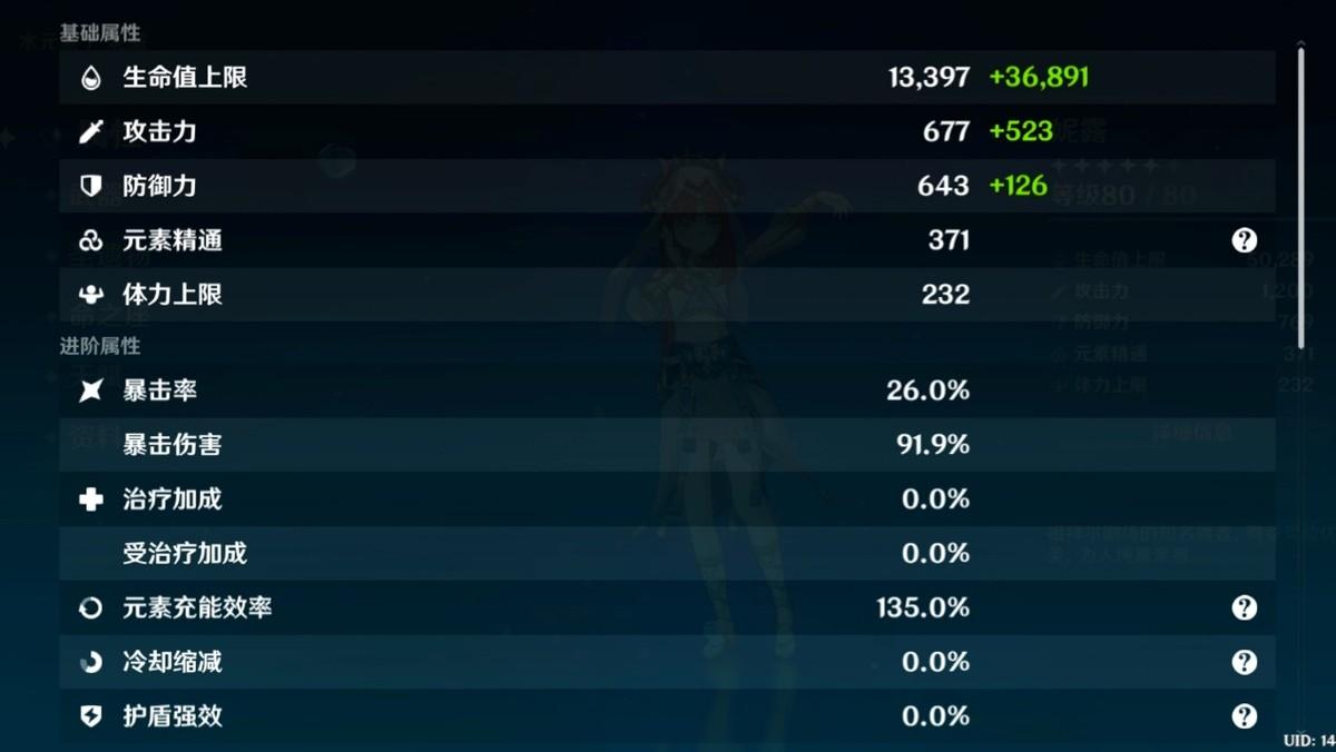 毕业面板方面,辅助向妮露生命值越高越好,双暴不用管,搭配专武和全生命值主属性与千岩2件套的加成,生命值可以来到70000点左右,如果少了专武大约生命值会只剩下57000~60000左右,而要达到前面说的丰穰之核伤害上限,约会需要75000点的生命值上限,可以再靠圣遗物的副属性尽量歪,或是一些加成生命值上限的角色,像是夜兰一同搭配组队等等。而输出向妮露则就需要考虑进去双暴的面板,但比较建议6命的妮露再考虑玩水伤,不然你只会像在玩非满命的八重神子一样,没有放在剧变反应队伍中打伤害都会觉得怪怪的。