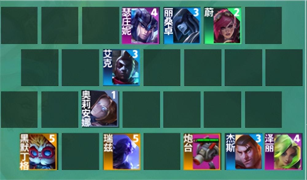 二、羁绊:6皮城、2格斗家、2枪手、2祖安、2弗雷、2神谕、1发明