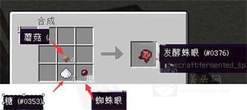 2、发酵蛛眼:糖+蜘蛛眼+蘑菇(灰色)合成获得。
