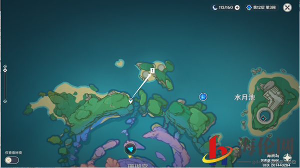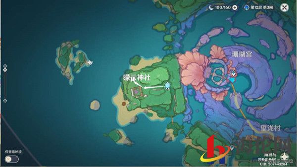 1、传送到海祇岛神像,按下图所示的路线走到曚云神社。