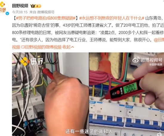 男子把修电路拍成800集悬疑剧 号称电工界"福尔摩斯"