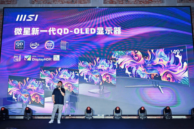QD-OLED这一新技术的引入可以说是给整个显示器市场带来了新的活力和期待。这次发布会不仅展示了微星在显示器领域的领先地位和技术实力,更是为人们提供了与这一新技术近距离互动的难得机会。在活动现场,微星展出了多款QD-OLED显示器,从大尺寸的49英寸带鱼屏到主流尺寸的32英寸、27英寸,覆盖了不同用户需求的各种场景。