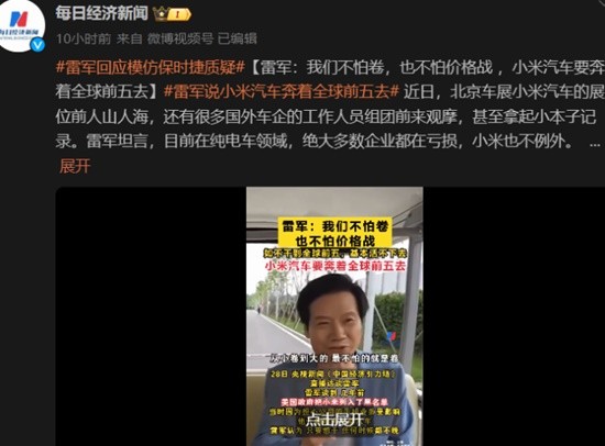 新款汽车发布后,不少网友质疑小米抄袭保时捷的设计。对此雷军表示:“放下身段,向优秀的公司学习,也是小米成长的必经之路。”雷军说,在学习的基础上,小米汽车也给消费者带来了许多惊喜,比如小米汽车在防晒上下了很多工夫、设计了科学合理的收纳空间等。