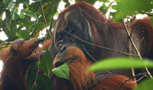 智商新高度!红毛猩猩首次被发现用药草处理伤口