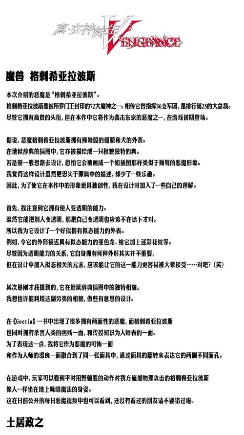 Atlus官方微博今日更新,带来了《真女神转生5:复仇》的新情报——恶魔“格剌希亚拉波斯”的介绍,以及负责设计本作角色的土居政之的点评。