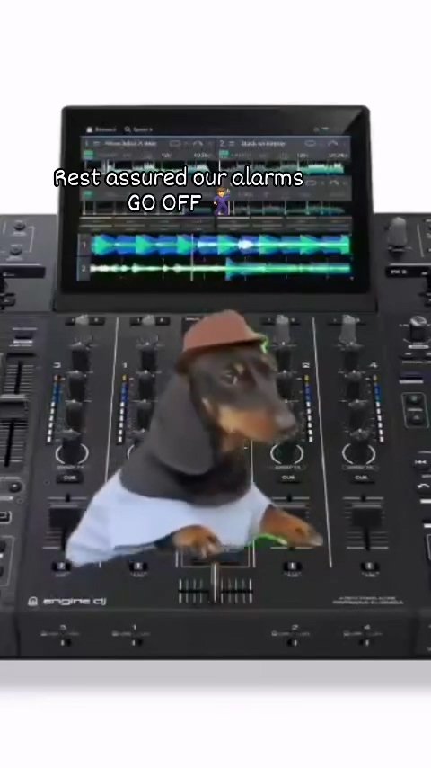 视频的背景音乐是三星手机的默认闹钟铃声,视频中一只戴着帽子的小狗随着曲调跳舞,在小狗上方还显示了一句“放心,我们的闹钟响起”。
