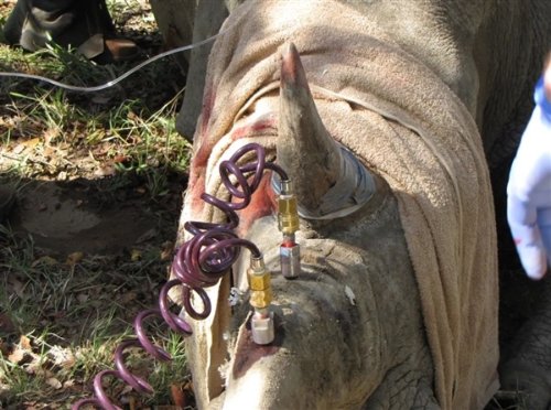 在犀牛角上打个孔 然后注射有毒液体:竟是保护它们