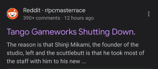 最近网上有传言称,Tango关闭的原因是三上真司离职时带走了一大批开发人员到新工作室,引发了玩家们的热议。