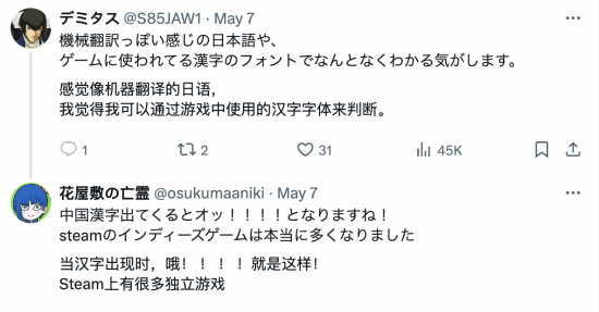有网友很喜欢这种设计,表示它有一种文化感或品味。也有网友表示,可以从游戏中的四字成语来分辨:如果你看到在日本不太熟悉的四字成语,尤其是“速战速决”,那几乎可以肯定就是中国游戏。