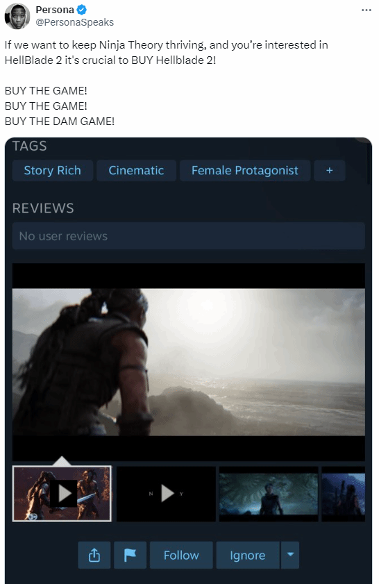 如果《地狱之刃2》销量不佳,Ninja Theory的未来将岌岌可危。于是Xbox有粉丝现在开始敦促对该游戏感兴趣的人购买该游戏,而不是通过XGP玩,希望通过这种方式来提高工作室的销量和收入。