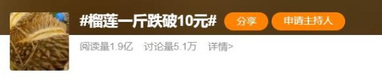 榴莲一斤跌破10元登热搜 云南昆明榴莲大批量上市