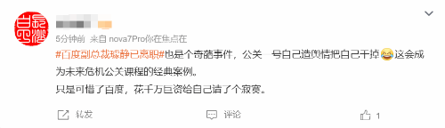 而对此,网友们也有很多看法,有人感叹百度的公关一号自己造舆情把自己干掉,也有人怀疑璩静此举本身就是为了炒作自己的个人IP。