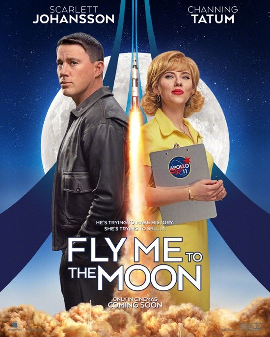 据守望好莱坞报道,近日,斯嘉丽·约翰逊、查宁·塔图姆主演的爱情喜剧片《登月大计划》发布多款海报,“是创造历史还是伪造?” 阿波罗登月计划中的阴谋和爱情。