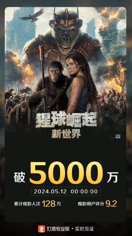 上映第三天:《猩球崛起:新世界》票房突破5000万!